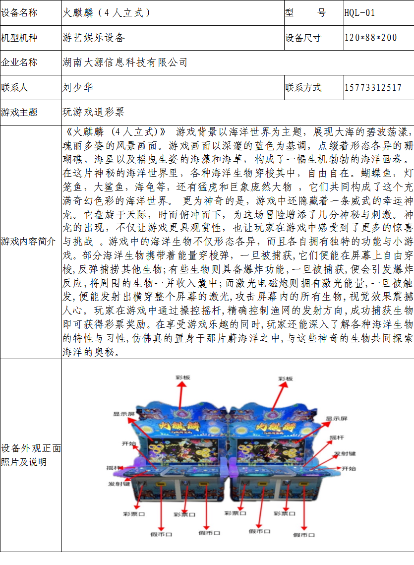 游戏游艺设备内容公示信息