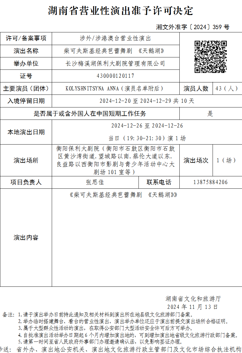 湖南省营业性演出准予许可决定-湘文外准字〔2024〕359号