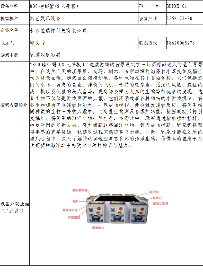 游戏游艺设备内容公示信息