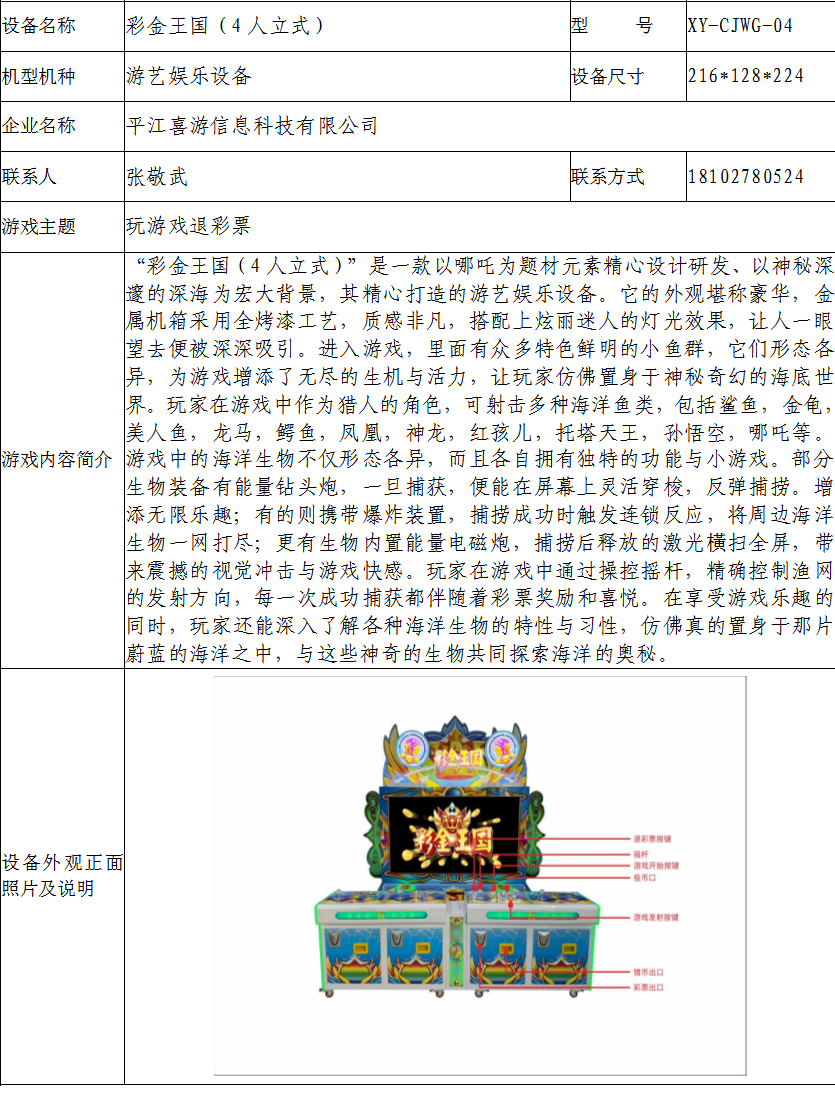 游戏游艺设备内容公示信息