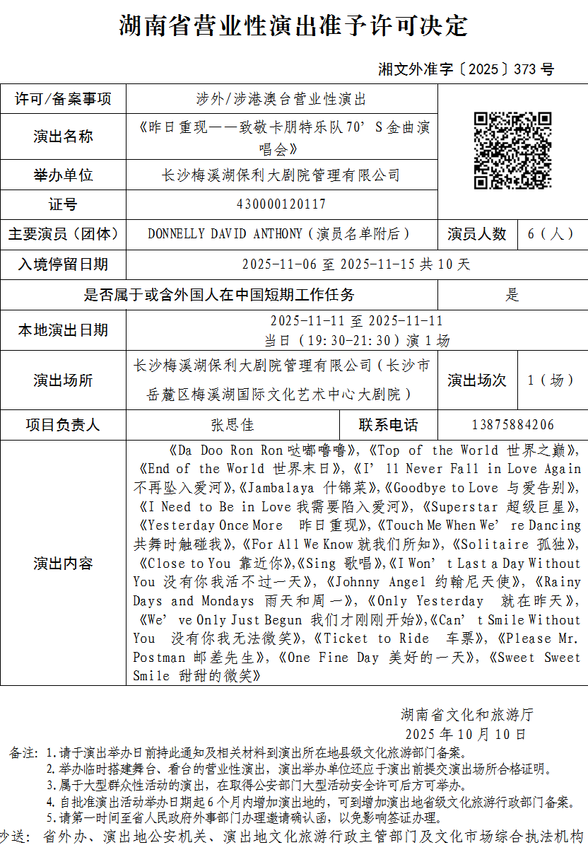 湖南省营业性演出准予许可决定-湘文外准字〔2025〕373号
