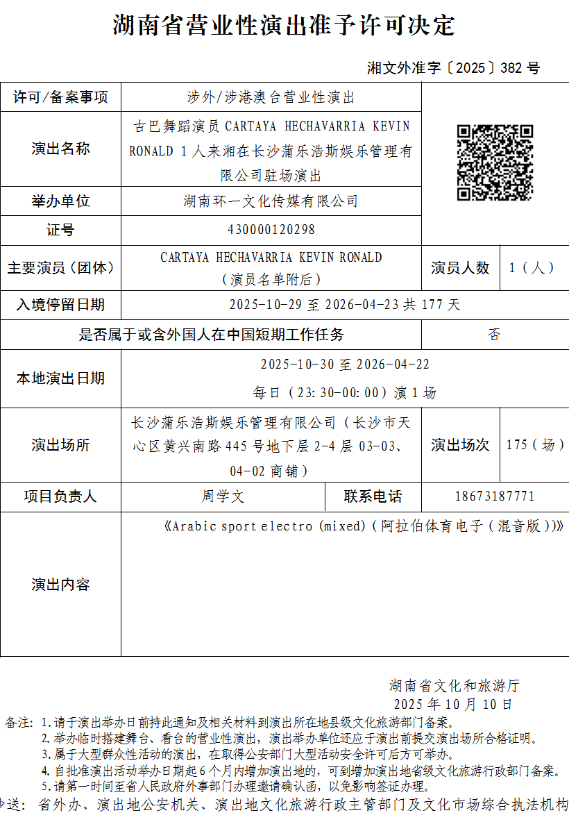 湖南省营业性演出准予许可决定-湘文外准字〔2025〕382号