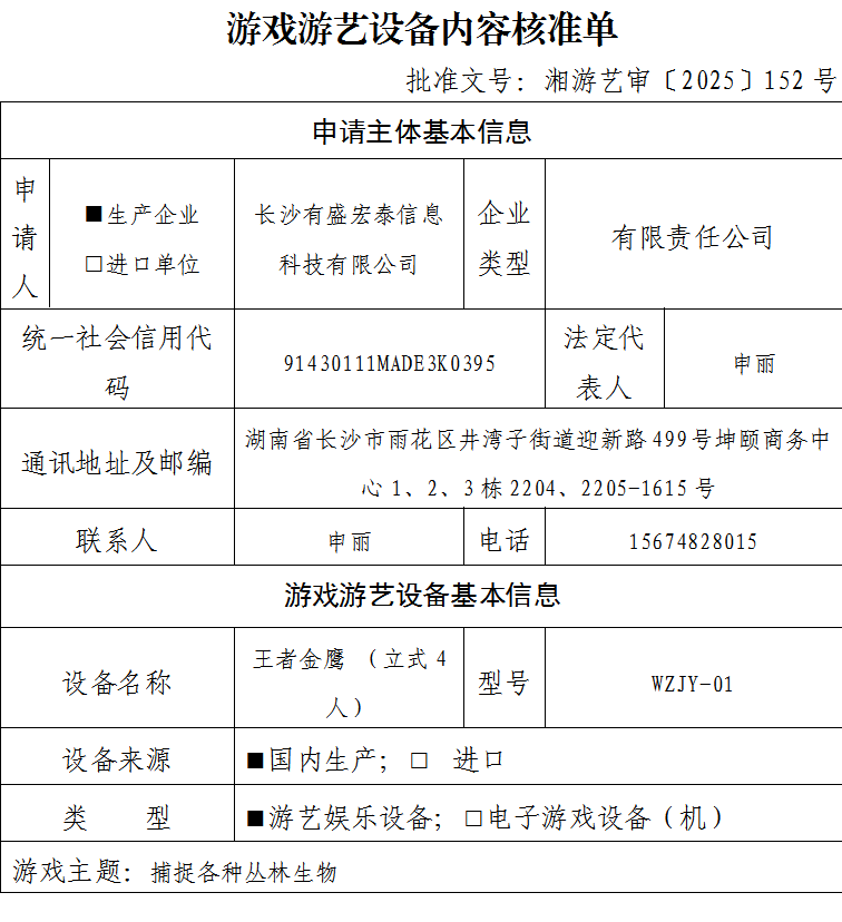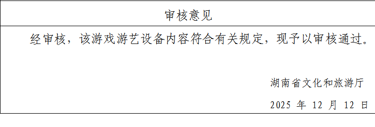 游戏游艺设备内容核准单-批准文号:湘游艺审〔2025〕152号