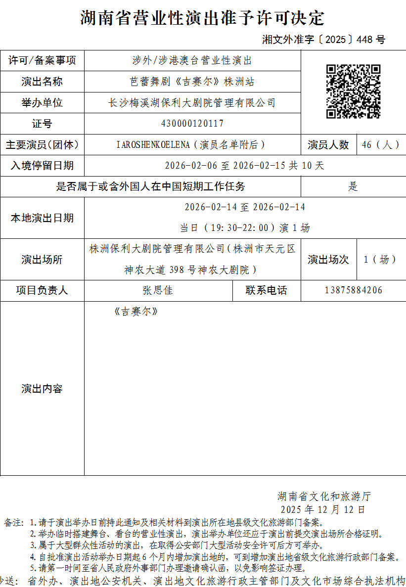 湖南省营业性演出准予许可决定-湘文外准字〔2025〕448号