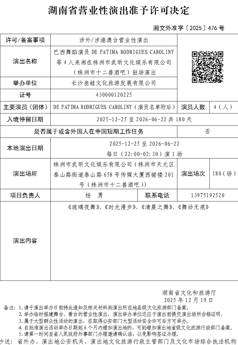 湖南省营业性演出准予许可决定-湘文外准字〔2025〕476号