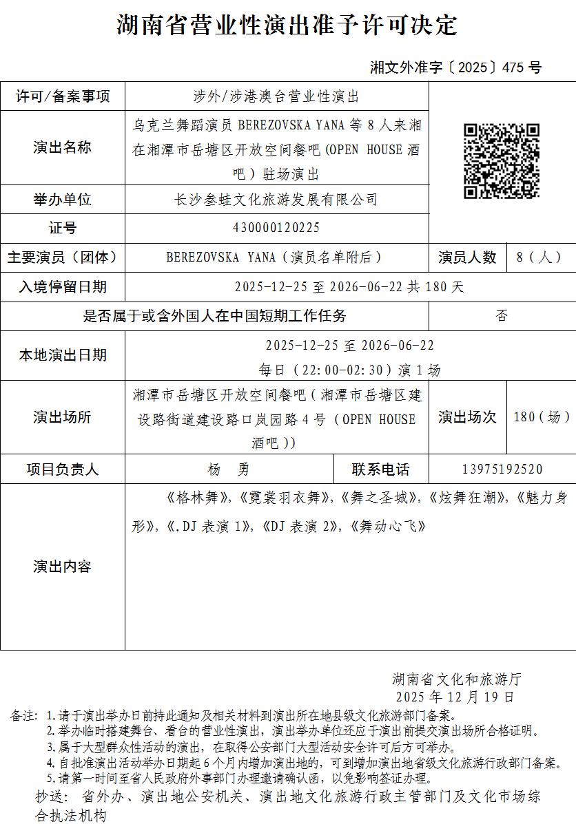 湖南省营业性演出准予许可决定-湘文外准字〔2025〕475号