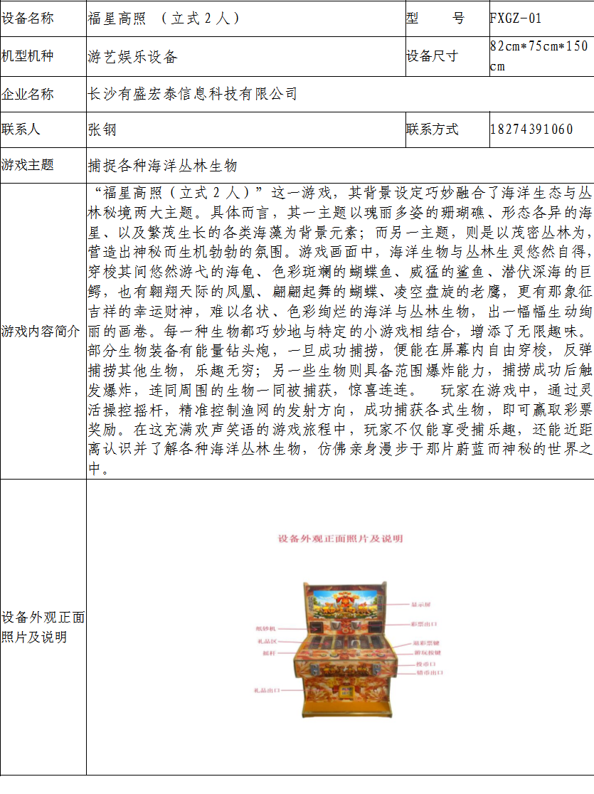 游戏游艺设备内容公示信息