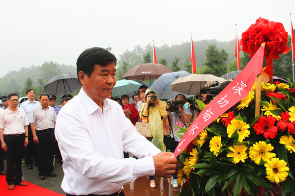 省政府副省长何报翔带领出席活动的其他领导向主席铜像敬献花篮