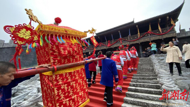 “A traditional wedding is full of a great sense of ceremony.” The groom, Peng Kejia, is from Dianfang Town of Longshan County, and his wife, Zhang Yingying, is from Henan Province. In order to let his wife better understand the customs and traditional folklore of Longshan and give her a grand wedding, the couple developed the idea of holding a traditional Tujia wedding. With the support of Rebala Scenic Area, their dream was realized.