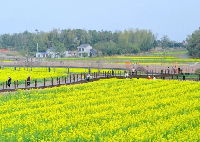 In the cole flower fields at the foot of Yingzhu Mountain, performers from the Changsha Song and Dance Theater Folk Orchestra played spring music, providing visitors with a fresh audio-visual experience, which is a vivid practice of developing rural leisure tourism and empowering rural revitalization through entertainment resources in Changsha.