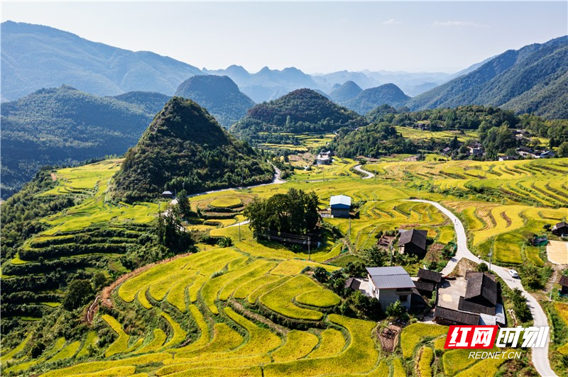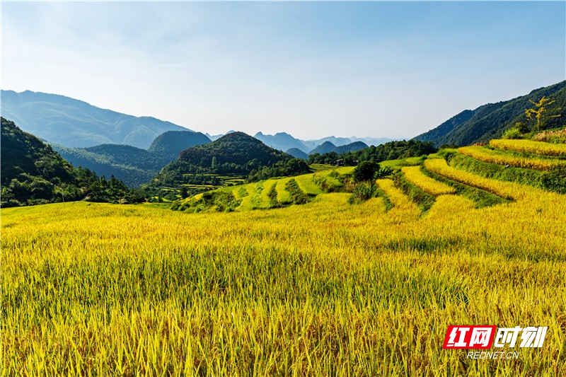 In September, the rice paddies in Tangjia Village, Dongan County, Yongzhou City attract many photographers and tourists. The autumn breeze, blowing across the rice paddies, brings a golden sea of rice sprawling beautifully across the landscape.