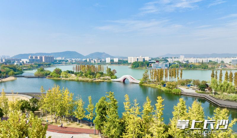 The photo taken on October 21 shows the splendid colors of trees like ginkgoes and sequoias in Houhu International Art Park, constituting enchanting autumn scenery.