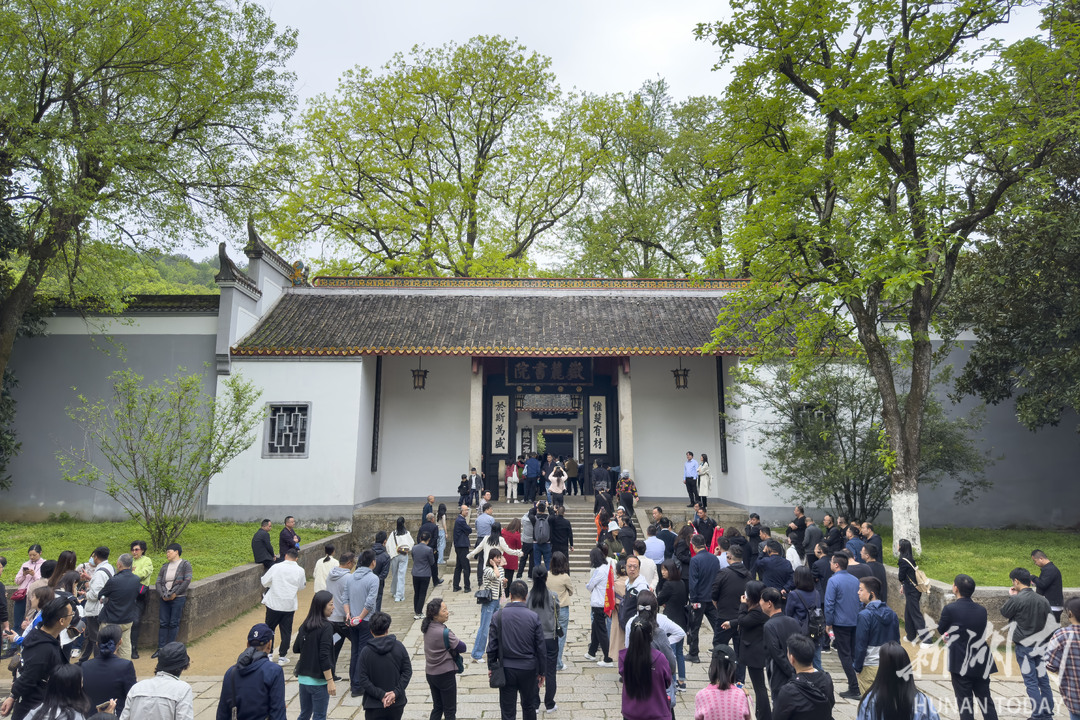 The photos taken on April 10 show Yuelu Academy in Hunan University teeming with tourists.