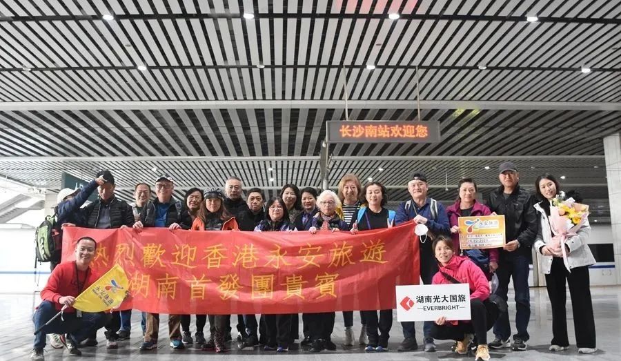 2月26日14:41,由香港永安旅游组织、湖南光大国际旅行社接待的16名香港游客抵达长沙高铁南站,入境长沙后,他们将在湖南体验六天五晚的美好旅程。这是国家恢复内地居民与香港、澳门团队旅游经营活动后,长沙首个香港入境旅游团,标志着长沙入境旅游正式重启。