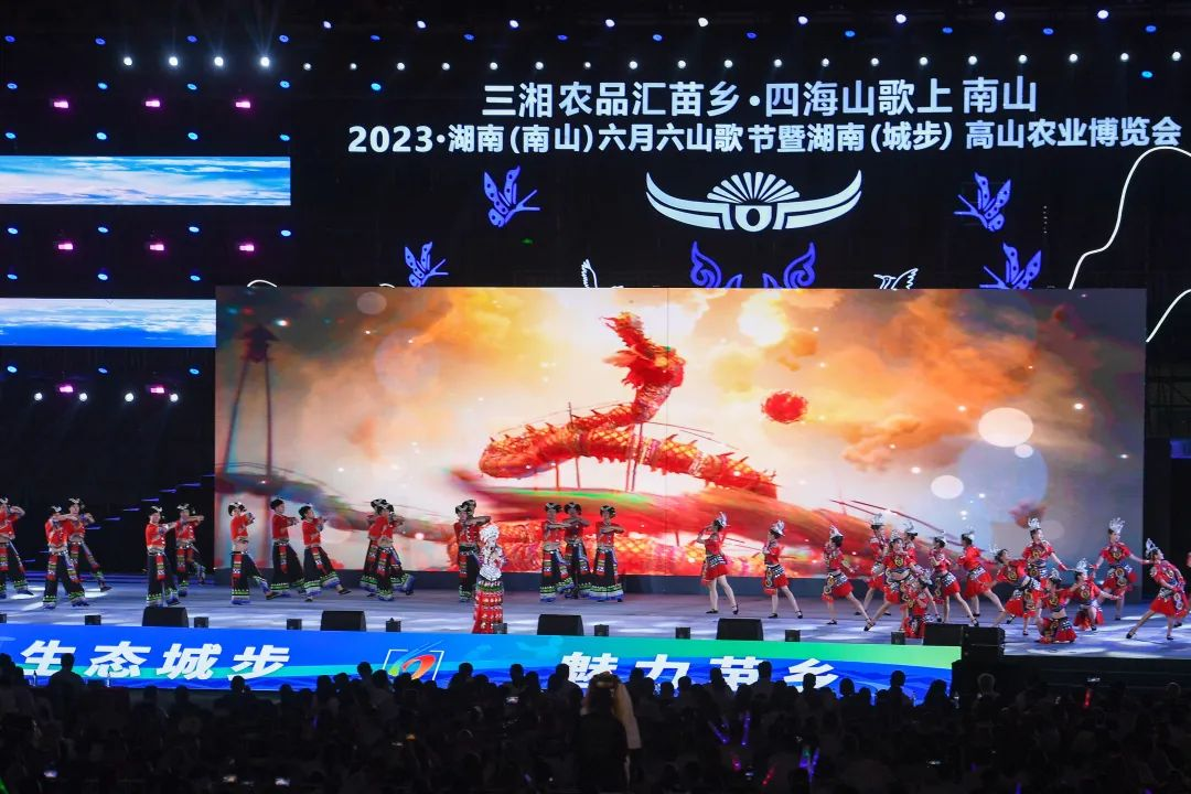 三湘农品汇苗乡,四海山歌上南山。7月23日晚,2023•湖南(南山)六月六山歌节暨湖南(城步)高山农业博览会在城步苗族自治县开幕。