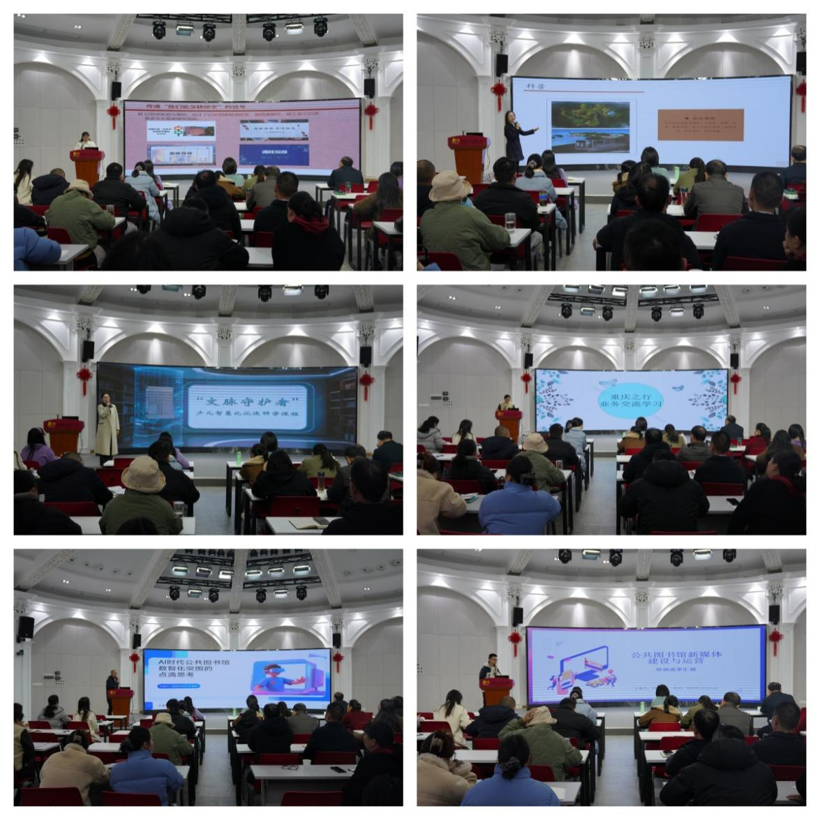 他山之石汲养分,馆际交流拓新局。2025年下半年外出学习的优秀代表依次分享见闻感悟:馆办公室主任刘芹详述重庆罗斯福图书馆旧址焕新重启仪式盛况及重庆图书馆、重庆市少年儿童图书馆的特色服务,展现了传统馆藏活化与空间创新的无限可能;馆数智阅读部主任王星胜阐释“AI时代公共图书馆数智化突围的点滴思考”,解读了区域协作、数智化转型的前沿趋势与实践案例;馆宣传中心刘亮亮同志聚焦公共图书馆新媒体建设与运营,从舆情应对、新闻传播、平台运营等方面,分享了中部六省(湘鄂赣皖晋豫)公共图书馆联盟新媒体建设与运营培训班的先进经验与个人思考,为我馆新媒体工作提供了新思路。