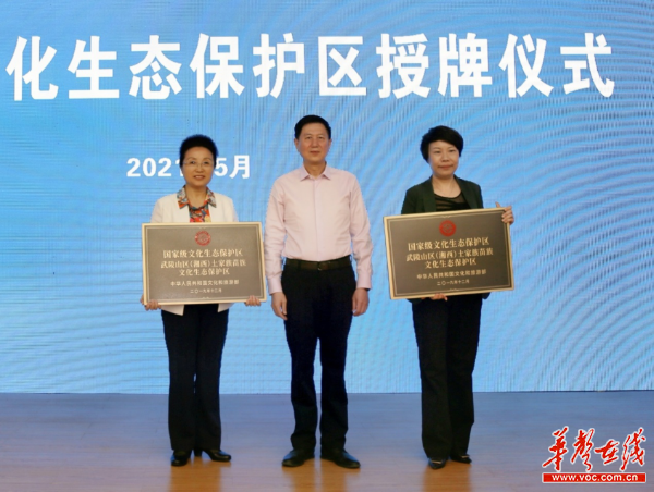 5月19日,国家级文化生态保护区建设经验交流活动在湖南省湘西州举行。活动现场,文化和旅游部党组成员王晓峰为武陵山区(湘西)土家族苗族文化生态保护区等7个首批国家级文化生态保护区及河洛文化生态保护实验区、景德镇陶瓷文化生态保护实验区授牌。