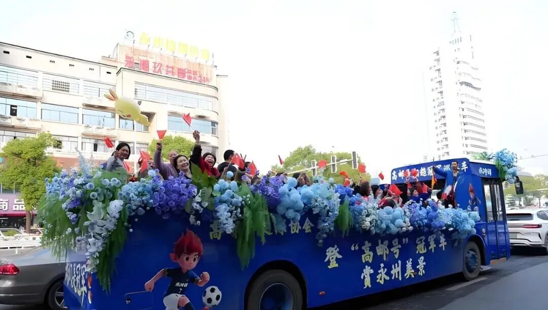 行程的“彩蛋”,莫过于驶上宋家洲大桥。你会发现,桥两侧挂满了来自江苏南京、苏州、泰州、南通等地网友的巨幅应援广告牌!“这里是永州,我们是冠军”“湘超黑马,冠军永州”……一句句滚烫的祝福,让这座大桥成为全国闻名的“情谊之桥”。当巡游车经过时,别忘了向这些来自千里之外的兄弟姊妹挥手致意,让湘江之水见证这段由体育精神缔结的奇妙缘分。