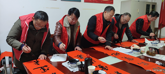 写春联活动现场,尽管寒气袭人,但丝毫挡不住李向、龚小平、雷力、蒲利国等隆回本土书法家为群众书写春联村民的热情。书法家们在红宣纸上尽情地挥毫泼墨,写下新年祝福。行书、隶书、楷书风格各异、笔酣墨饱、大气磅礴,忙得不亦乐乎。不一会儿,一幅幅吉祥喜庆、寓意美好的春联展现在眼前。
