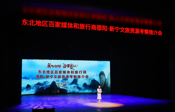 12日晚,在新宁舜皇里文旅产业园举行了东北地区百家媒体和旅行商邵阳·新宁文旅资源考察推介会。推介会开始前,新宁文旅宣传片在会场大屏幕滚动播出,一幅幅风光旖旎的崀山画卷徐徐展开,展示了新宁丰富的文旅资源,台下观众看得如痴如醉。推介会上,邵阳市文旅广体局、新宁县文旅广体局分别作了邵阳市文化旅游推介、新宁县文化旅游推介。随后,考察团成员共同观看了大型文旅演出《爱在崀山》,通过沉浸式体验领略大美崀山独特的神奇文化魅力,享受一场寻爱、懂爱、品爱、敬爱的视听盛宴。