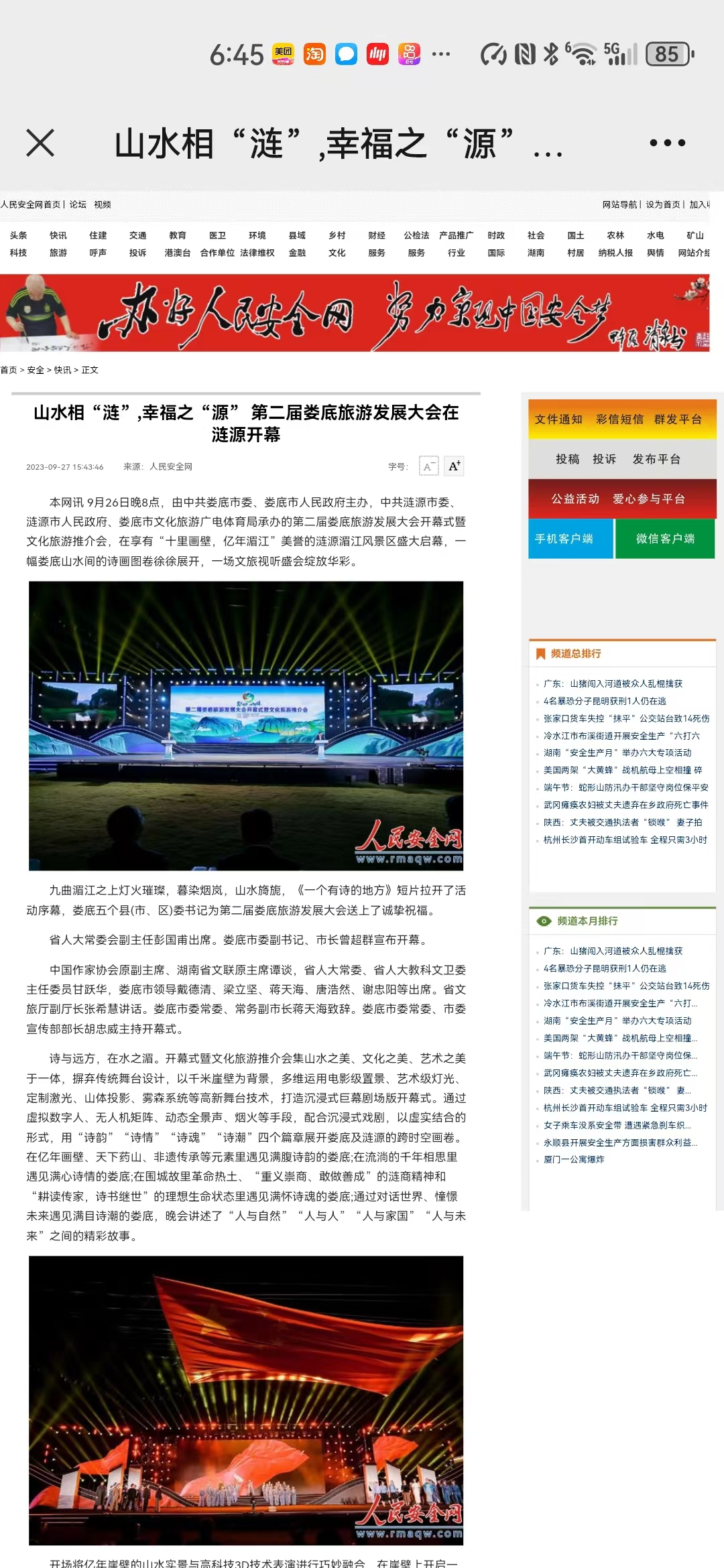 截至目前,关于2023第二届娄底旅游发展大会相关报道全网阅读量(观看量)达到7800万次。多个话题登上微博、抖音、今日头条热搜榜。