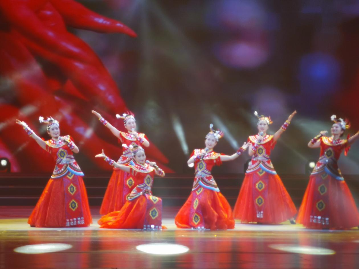 群舞《瑶娃趣鼓》以瑶族长鼓为创作题材,采用少儿舞蹈形式,体现瑶族小阿妹以鼓作舞、赛鼓作乐,尽情享受童年的美好时光。