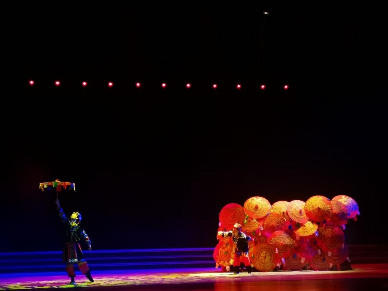 群舞《伞·承》以蓝山县省级非遗《瑶族伞舞》为创作主体,以瑶族伞舞传承为主线,以情景舞蹈形式,在原有原生态的元素中加以提升、创新,使民族与现代相结合,更具民族性、艺术性、观赏性,深度诠释瑶族人民对民族文化保护、传承的迫切愿望。