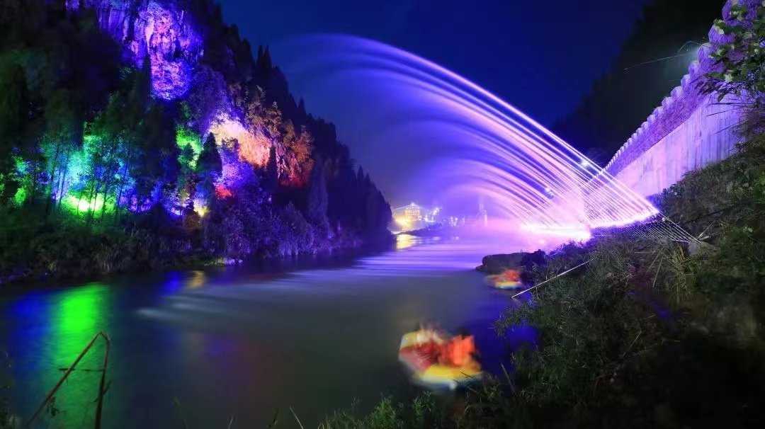 油溪河两岸全部安装了高智能太阳灯和监控系统,打造全国独一无二的水中隧道漂、雾中梦幻漂、险滩刺激漂、激情水战漂。