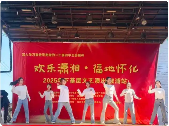 演出现场气氛热烈,节目精彩纷呈。青年现代舞《Apt》、歌伴舞《乡村欢歌》、器乐演奏《浏阳河》、戏剧小品《双喜临门》、歌曲《赶圩归来啊哩哩》《少年中国说》等节目轮番上演,观众时而跟唱,时而鼓掌,脸上洋溢着喜悦的笑容。演出过程中,还穿插了“学习二十届四中全会精神”有奖问答环节,进一步增强了互动性与参与感。