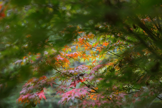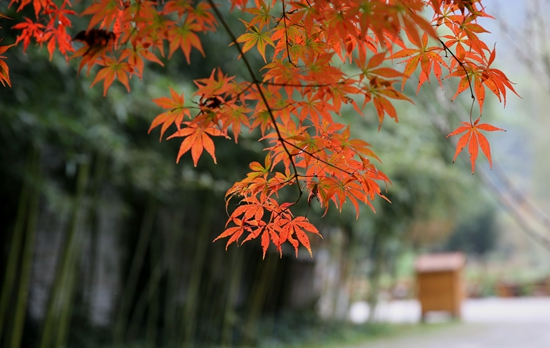 11月20日,张家界武陵源黄龙洞景区生态广场,色彩斑斓的枫叶将景区装扮得分外妖娆,宛似深秋画卷。