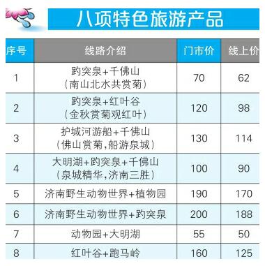 据了解,这八项特色旅游产品将在同程网、携程网、去哪儿网、美团网等电商平台销售,市民游客可提前在网上购买,然后到景区游览。