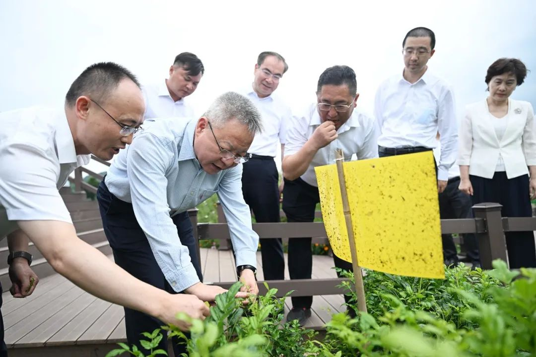 6月21日,沈晓明来到三家馆村莓茶生产基地,了解产业发展、乡村振兴等情况。