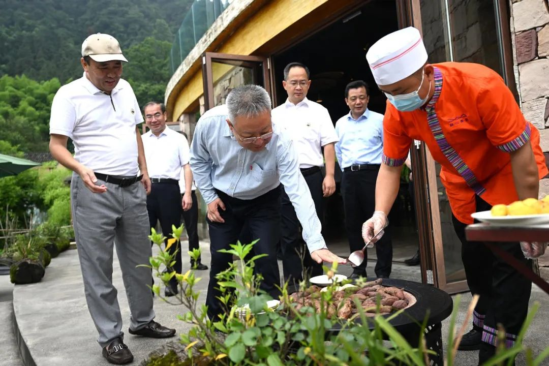 6月21日,沈晓明来到梓山漫居民宿,了解民宿产业集群发展和游客接待服务等情况。