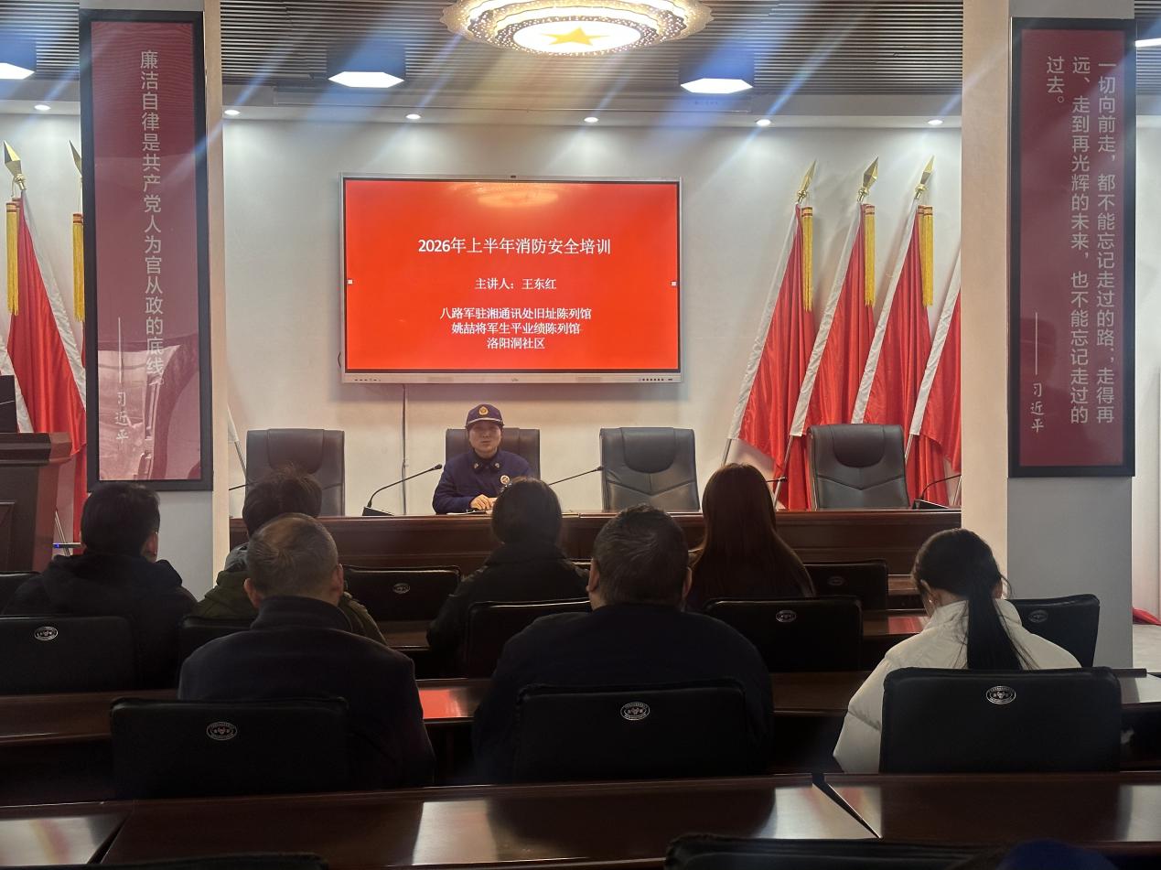 演练在八路军驻湘通讯处旧址举行,采取“学、练、查”相结合的模式,通过理论学习与实操训练相结合,全面强化参训人员的火灾防控意识与实战能力。