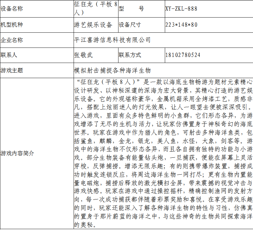 游戏游艺设备内容公示信息