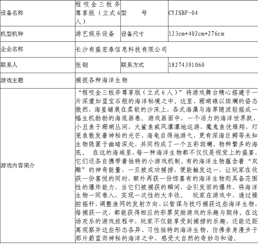 游戏游艺设备内容公示信息